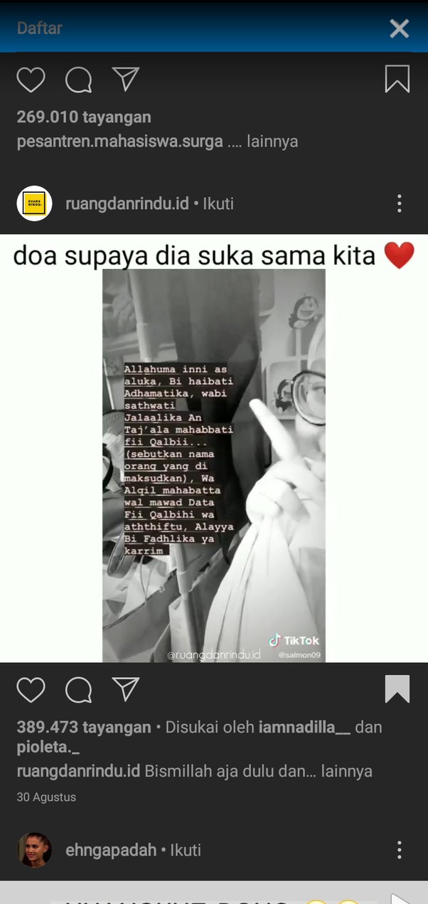 Dengan cinta, seseorang bisa merasakan kebahagiaan dalam hidup. Boleh saja kan kita untuk berharap agar si dia kangen. Berikut doa agar seseorang merindukan kita dan menaruh cinta kepada kita lengkap . Meskipun gebetan atau pasangan kamu sedang sibuk bekerja dan beraktivitas. Doa agar dia menghubungi kita. Jika ingin selalu dirindukan oleh kekasih atau pasangan, maka ada amalan doa agar selalu dirindukan pasangan atau kekasih. Doa agar kekasih rindu setengah mati. Perasaan rindu atau ingin dicintai adalah fitrah manusia. Doa agar dia merindukan kita sering kali dicari pasalnya merindukan dan dirindukan adalah dua hal yang sangat membahagiakan. Doa agar seseorang merindukan kita kerap dilakukan bagi mereka yang sudah lama tak bertemu atau mereka yang melakukan hubungan jarak jauh . Doa agar seseorang merindukan kita. Doa agar dia ingat kita terus kangen berat dan selalu ingin bertemu dalam menjalin hubungan cinta kadang kita merasa ingin selalu bertemu merasa selalu .